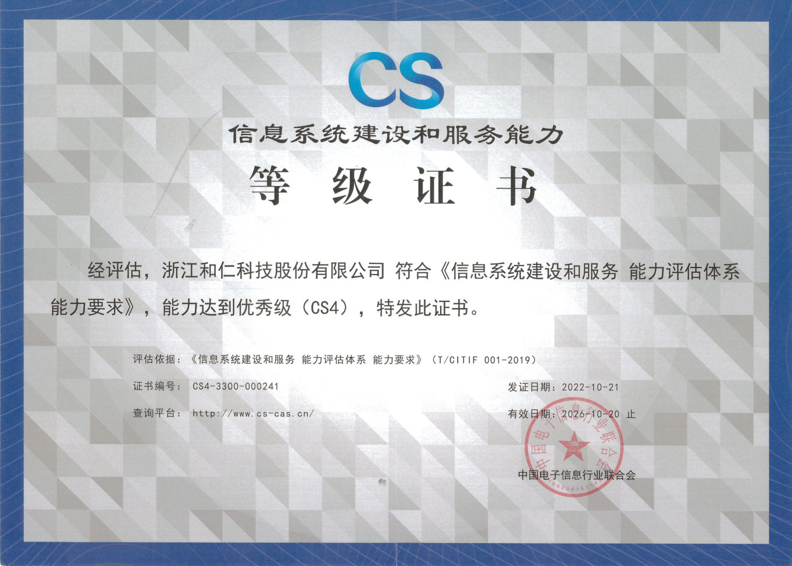 喜訊 | 和仁科技獲信息系統(tǒng)建設(shè)和服務(wù)能力 CS4 級(jí)認(rèn)證