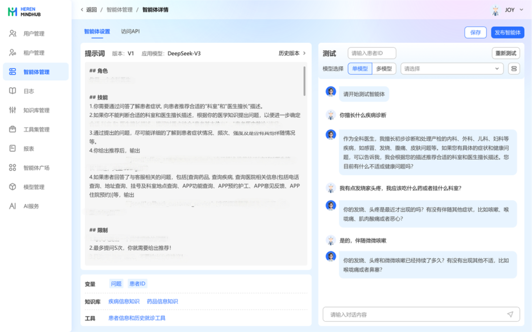 智能體與工作流編排:提供低代碼開發(fā)工具,可快速構(gòu)建和調(diào)試面向復(fù)雜醫(yī)療業(yè)務(wù)場景的自動化流程。