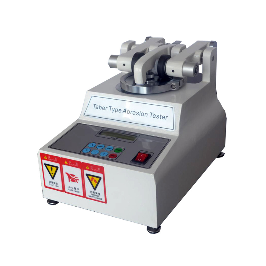 本機適用于布、紙、涂料、合板、皮革、地磚、玻璃、天然塑膠等。試法為回轉之試料頂著一對磨耗輪,并加以規定之負荷,試料旋轉時帶動磨耗輪,藉以磨耗試料,磨耗損失重量為試驗前后試料之重量差。
