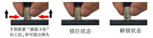 探頭的航空插頭拔出,航空插頭具有彈簧限位,不可暴力旋轉拉扯等操作,需如下圖方式操作拔出。