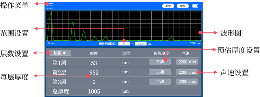 - 聲速設置:準確設置每層材料的聲速,精準測量每層厚度。